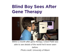 夜盲症(RP, Ritinitis Pigmentosa)是一種性聯遺傳(X-link)的基因疾病,屬隔代遺傳,常常由外公傳至母親再傳至男性外孫;視網膜(底片)功能被影響由淺至深,最終可至全盲,時間可能數年, 甚至在半年至一年內就可能由彩色世界變成黑暗地獄。